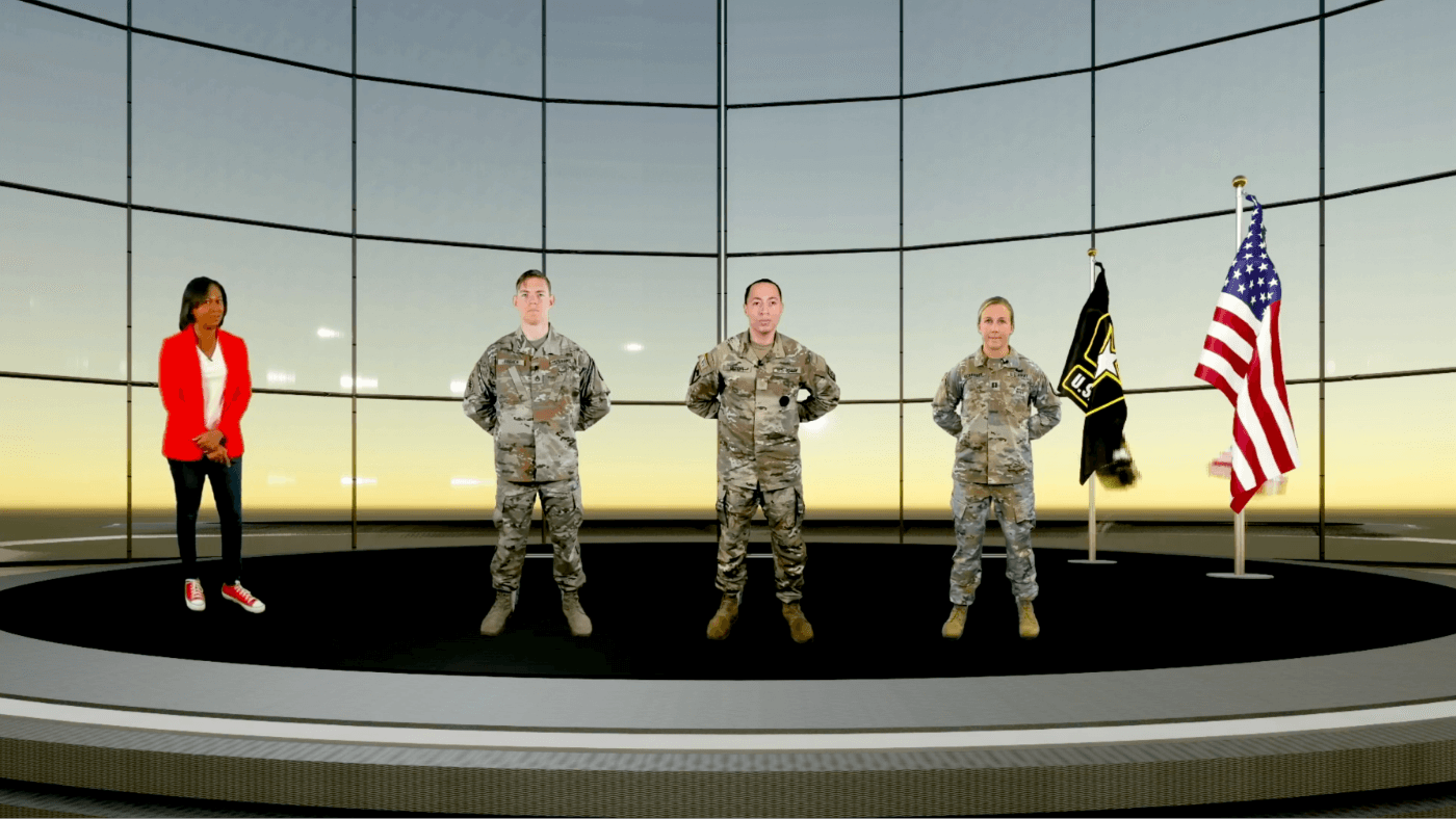 Through the magic of real-time green screen compositing, the Soldiers and host interacted on a virtual stage. Even though some were thousands of miles apart.